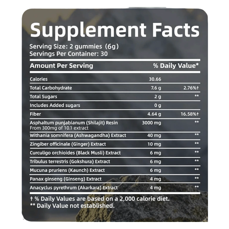 - Ingrédients artificiels : Les gummies contiennent souvent du sucre, des arômes et des conservateurs, ce qui altère la pureté naturelle du Shilajit.